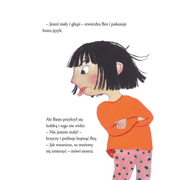 Bea i Basse to dwoje przedszkolaków. Są bliźniakami, ale nie wyglądają tak samo. No i Bea jest odrobinę starsza, bo urodziła się najpierw. Za to Basse potrafi więcej zjeść. I nie boi się pająków jak Bea! I kto tu jest mały?