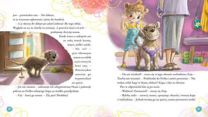 Zoja spotyka na podwórku bezpańskiego psa, który rusza za nią do domu… Dziewczynka nazywa czworonoga Fiołek. Gdy nie udaje się znaleźć właściciela Fiołka, rodzice Zojki kupują mu jedzenie, zabawki, smycz. Szybko okazuje się, że pies to nie tylko przyjemności. Może załatwić się w domu, pogryźć ubrania i zabawki, zjeść plastelinę i ją zwymiotować… Z psem jest dużo pracy i niezbyt miłych obowiązków. Czy Zoja zaangażuje się w opiekę nad zwierzakiem?